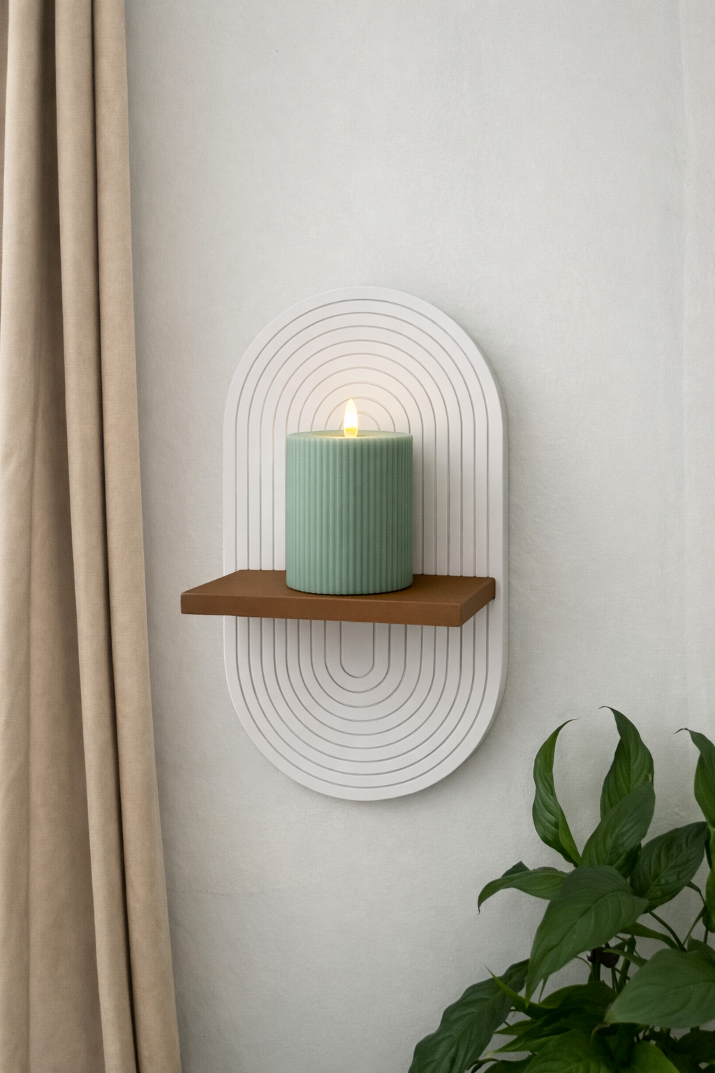 Nordic Dekoratif Duvar Rafı mum, küçük bitkiler veya dekoratif objeler için ideal olan bu özel tasarım, duvarlarınızı sadece doldurmaz, aynı zamanda bir odak noktası haline getirir. Tek başına kullanıldığında sade bir şıklık sunarken, farklı kombinasyonlarla daha güçlü bir dekoratif etki yaratır.